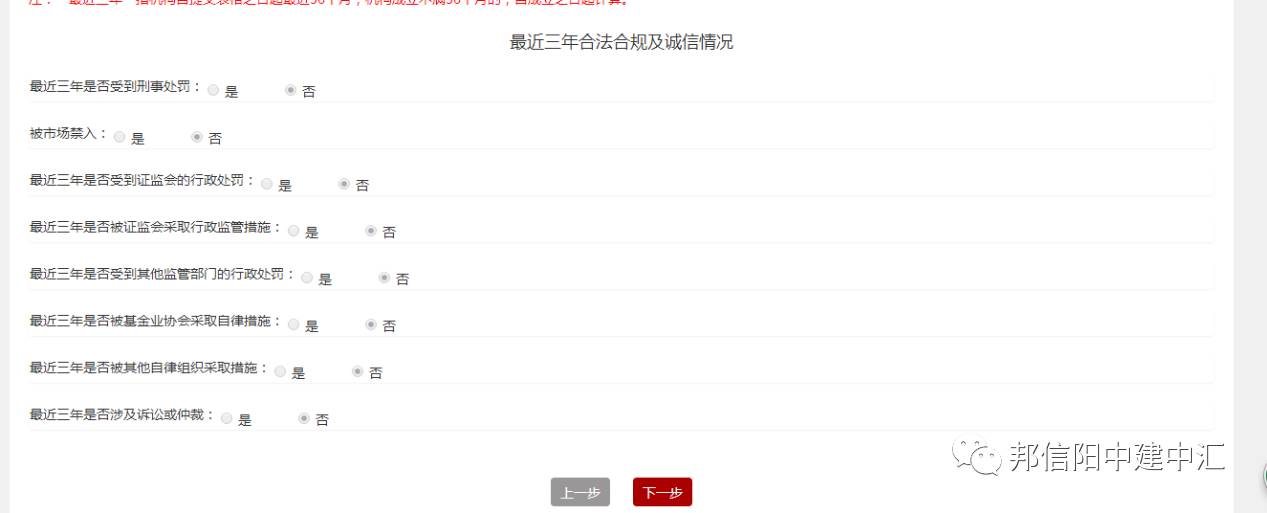 诚信信息报送信息包括最近三年是否受到刑事处罚、被市场禁入、最近三年是否受到刑事处罚、被市场禁入、最近三年是否被证监会采取行政监管措施、最近三年是否受到其他监管部门的行政处罚、最近三年是否被基金业协会采取自律措施、最近三年是否涉及诉讼或仲裁。