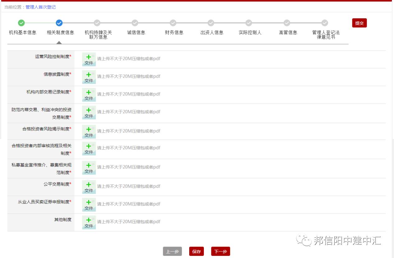注:上图为管理类别为私募证券投资基金的内部控制制度报送系统截图,如为私募股权投资基金或创业投资基金,则无适用于私募证券投资基金的公平交易制度及从业人员买卖证券申报制度的报送端口。
