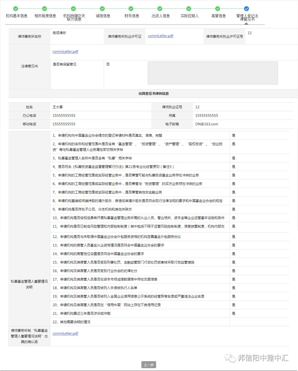管理人登记法律意见书主要问题:报送信息与法律意见书的信息应保持统一。