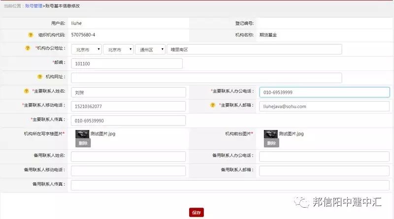 私募基金管理人需要报送的账户基本信息包括机构办公地址、邮编、机构网址、主要联系人姓名、主要联系人办公电话、 主要联系人移动电话、主要联系人邮箱、主要联系人传真、机构所在写字楼图片、机构前台图片、备用联系人姓名、备用联系人办公电话、备用联系人移动电话、备用联系人邮箱传真。