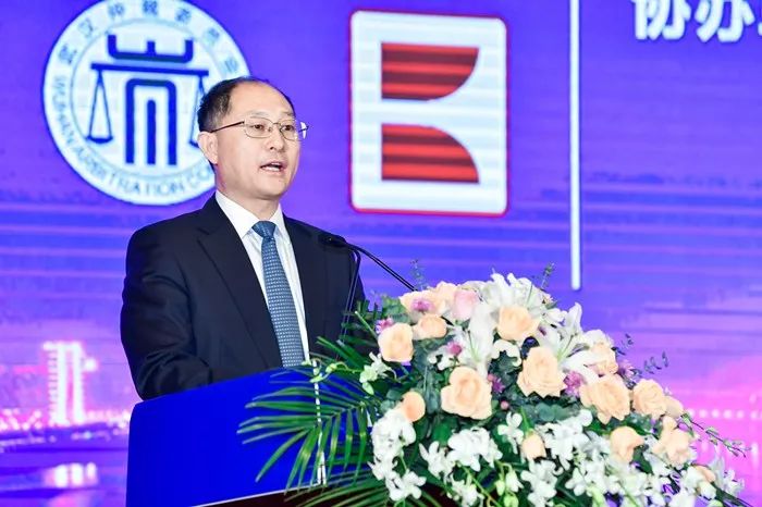 全国人大常委会副委员长、国家高端智库武汉大学国际法研究所首席专家万鄂湘为开幕式作书面致辞。国家高端智库武汉大学国际法研究所副所长冯洁菡代为宣读了该致辞。他在书面致辞中指出,当今世界正面临百年未有之大变局,人类的发展触及更为广阔和纵深的领域。本届东湖国际法律论坛,顺应全球治理体系变革的内在逻辑,从中国积极参与全球治理的现实需要出发,聚焦未来科技视域下的大数据、网络安全、国际竞争秩序、金融与法律风险等前沿问题,有助于在全球更大范围、更深层次的科技革命和产业变革背景下,推动国内外科技领域前沿法律思想与实践的交流互鉴,为推动构建人类命运共同体,进一步凝聚全球治理与国际法治新共识,促进科技和产业可持续发展做出新贡献。