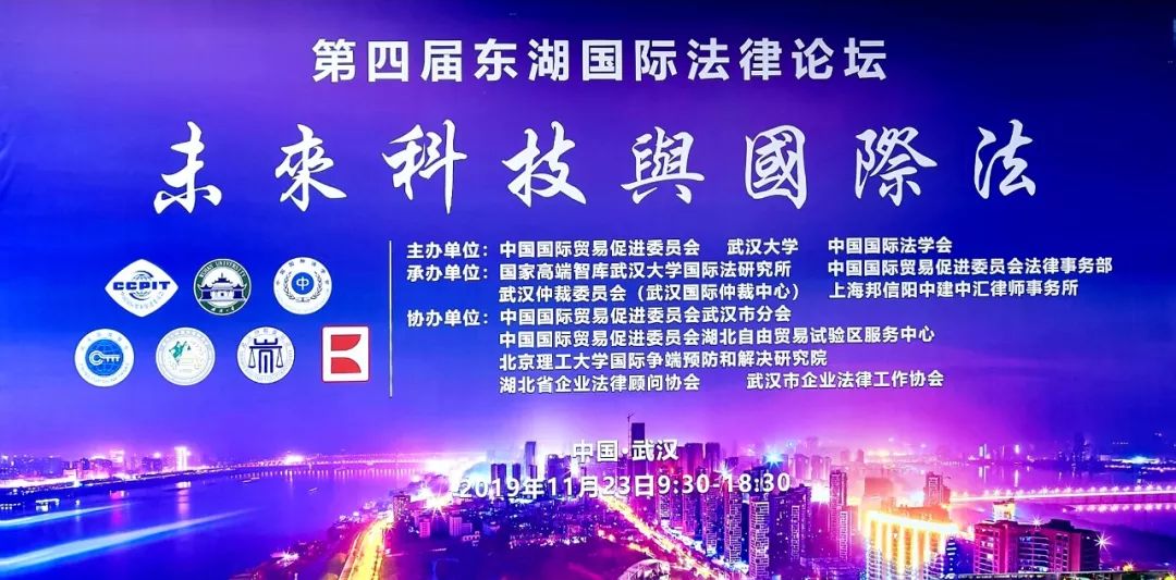 2019年11月23日,第四届东湖国际法律论坛在美丽的武汉东湖之滨圆满举办。本届论坛的规格全面升级,经合作各方共同商议,论坛由中国国际贸易促进委员会、武汉大学、中国国际法学会三家单位主办,国家高端智库武汉大学国际法研究所、中国国际贸易促进委员会法律事务部、武汉仲裁委员会和上海邦信阳中建中汇律师事务所共同承办。并且随着论坛的影响力不断扩大,参会嘉宾的阵容更为强大,众多中外国际法专家学者参会,共襄盛举。