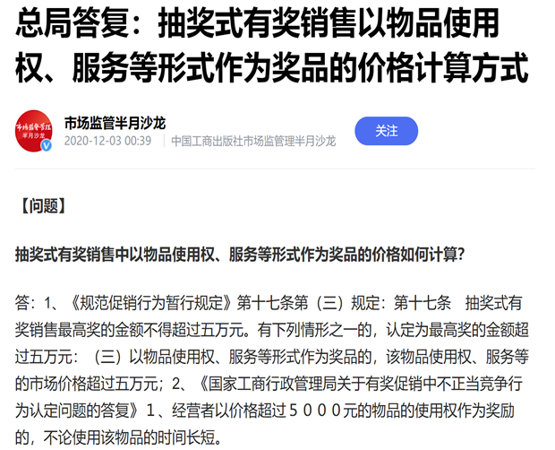 在我们给企业客户提供合规法律服务的过程中,我们注意到大部分企业对于618、双11等重要时间节点以及官方网络店铺、线下促销等方式开展的促销活动,一般都会进行相应的合规审查,活动的合规水平也相对较高。但是在当前各类自媒体高度发达的背景下,常常在微博、微信公众号、短视频、各类APP中开展的一些为增加客户粘性或宣传推广性质的有奖互动小活动,在法律属性上也可能构成有奖销售,但对该类自媒体中的有奖销售活动由于规模较小、频次较多、形式多样等原因,往往成为企业有奖销售活动合规审查的薄弱环节并造成潜在的法律风险。(以下举例仅作为探讨,不代表相关内容存在任何的不合规)。