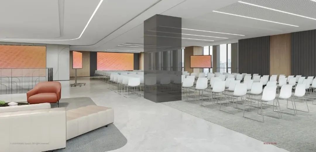 邦信阳律师事务所即将启用的新办公室内部面积约4500㎡,采用简约现代设计,功能配置齐全,设有合伙人办公室、贵宾接待室、特色会议室、灵活办公区、课程直播间、党建会议室、荣誉展示区、休闲茶水区、健身区等。随处可见的绿植盆栽、整面墙宽的落地窗、开放的工作环境,创造了一个明亮、互动和独立兼具的工作氛围。