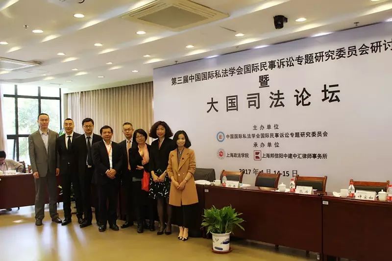 2017年4月14-15日,由中国国际私法学会国际民事诉讼专题研究委员会主办,上海政法学院和上海邦信阳中建中汇律师事务所联合承办的旨在探讨我国加入海牙《取消认证公约》必要性和可行性的“第三届中国国际私法学会国际民事诉讼专题研究委员会研讨会暨大国司法论坛”在上海佘山脚下的花园学府上海政法学院隆重召开。