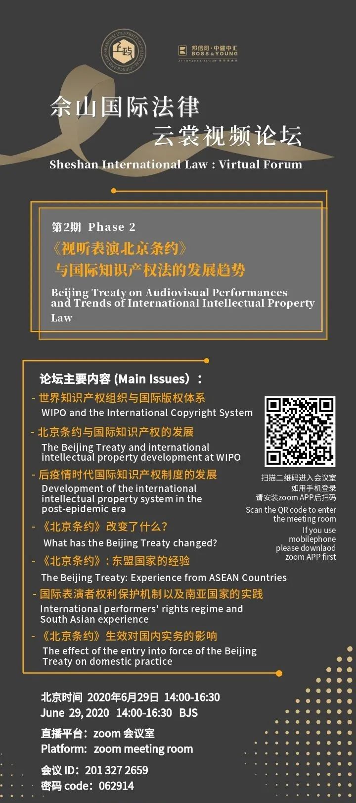 “佘山国际法律-云裳视频论坛”是以线上形式开展的高端学术论坛,聚焦国际热点事件及涉外法律相关问题,邀请海内外知名专家学者参与对话及交流,旨在推动国际法前沿问题的深入研究,提升我国在国际法重点研究领域的国际地位。论坛于2020年5月拉开序幕,后期将会继续推出系列主题研讨会,名家汇集、云端相聚,为大家呈现精彩的学术观点的碰撞。欢迎您关注邦信阳中建中汇微信公众号,及时获取下期预告和往期精彩回顾。