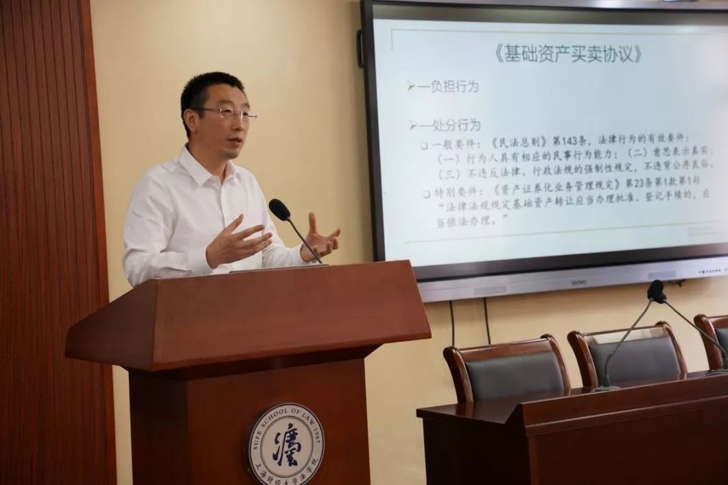主讲嘉宾上海财经大学法学院教授、比较民法与判例研究所所长朱晓喆教授分享了题为“反思资产证券化中的所谓‘真实出售’的报告。朱教授以一个企业资产证券化(ABS)的结构图开场,讲解了何为企业资产证券化;以及《基础资产买卖协议》的性质;基础资产权利转让中涉及的财产的独立性与风险隔离问题,包括:破产隔离、破产前的行为撤销与无效、禁止抵销、执行异议或执行异议之诉;关于“真实出售”,朱教授认为以“真实出售”为标准判断资产证券化基础资产的权属是否转移给受让人,在中国法的语境下是不必要的,当前合同法、破产法等法律项下的制度足以对资产证券化基础资产的权属是否转移给受让人作出判断。