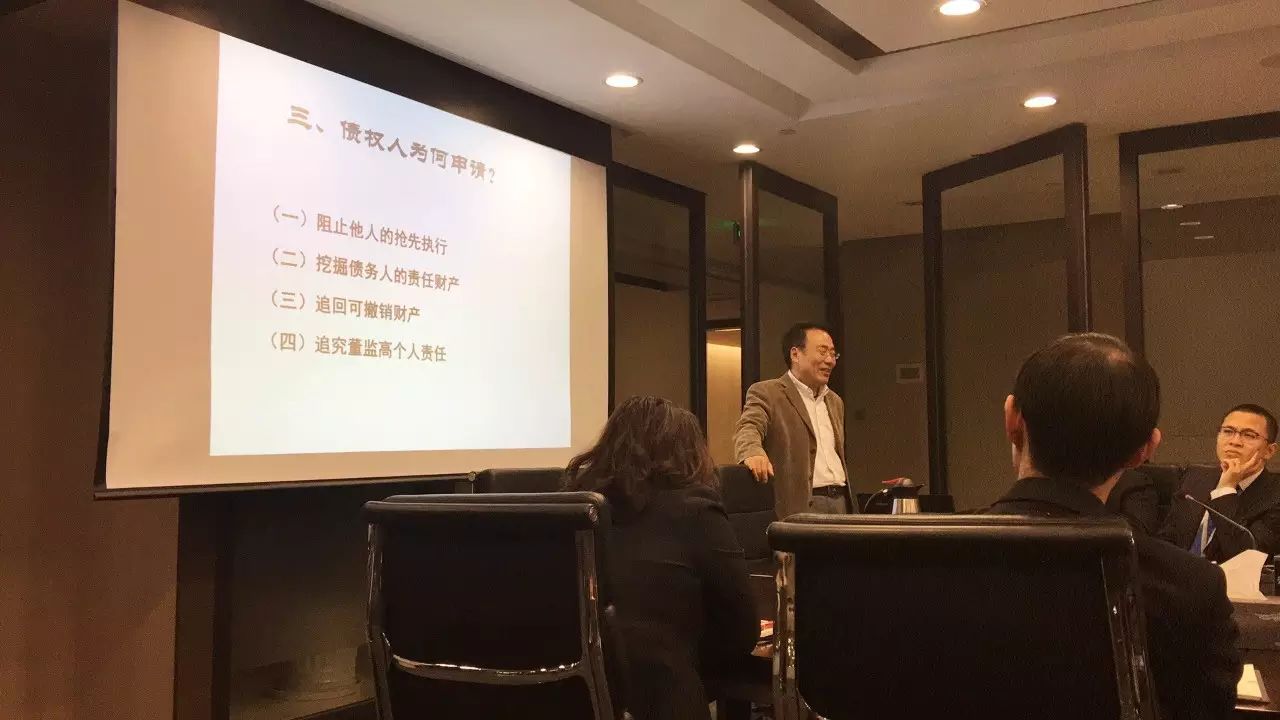 韩教授的本次讲座以破产申请的起因为切入点,对债务人和债权人申请破产的动机、程序、法律风险等问题进行了细致分析讲解。就债务人申请破产,韩教授介绍了其主要动机为获取自动冻结、停止计算(普通)利息、自行管理财产和营业等;而债权人申请破产的动机,韩教授认为主要在于阻止他人抢先执行、挖掘债务人责任财产、追回可撤销财产和追究董监高个人责任等。韩教授结合大量实证案例和美国立法例,为本所律师分析了我国企业破产过程中现存的相关法律问题,并对我国破产法制度的践行和完善提出了自己的看法。