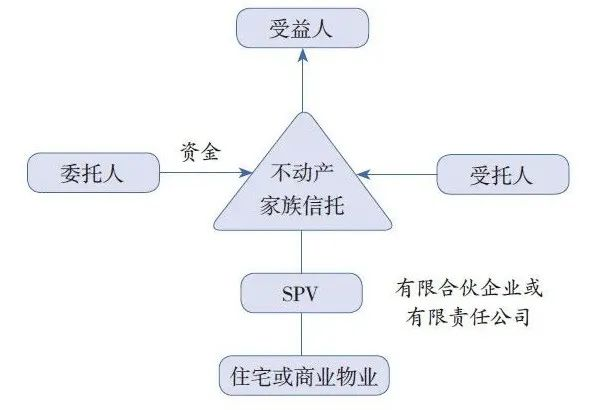 不同于自然人直接购买房产的方式,将SPV模式引入到房产家族信托中可以有效规避房产信托在实践中的操作障碍。通过家族信托多层次SPV架构专业设计,委托人的房产信托资产并不直接由受托人持有,而是通过SPV间接持有,旨在满足家族信托资产的财产权与管理经营权相分离、信托利益与信托财产负债相隔离、受托人作为信托财产名义所有权人与信托资产经营风险相隔离、财产控制人风险与资产受益权享用相分离等需求,实现房产集中管理、后代全面受益。