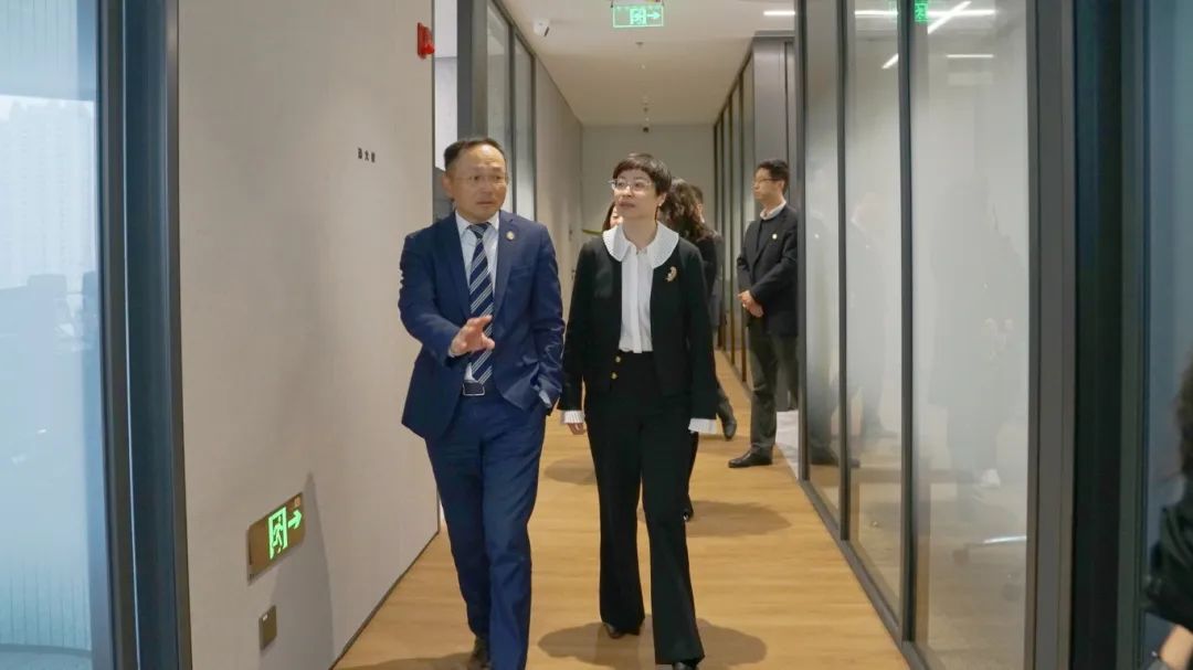 参观完毕后,调研会议正式开始。淮海中路街道社区党群办主任俞晓蕾介绍了目前淮海中路街道区域化党建的情况。通过整合市央属、市属、区属国有党组织及外资、民营党组织资源,推动经济发展和营商环境优化。近期淮海中路街道将组织年度区域化党建会议,推动区划党建平台上的资源整合,解决成员单位问题,实现共赢共创。俞主任还提到,淮海中路街道正在探索律所与街道在涉外法律服务方面的合作机会,创立了自有品牌“淮海新天地楼宇法治论坛”,未来希望和邦信阳能够合作更多法治相关项目,惠及淮海中路街道入驻单位的同时,进一步推进法治建设发展。
