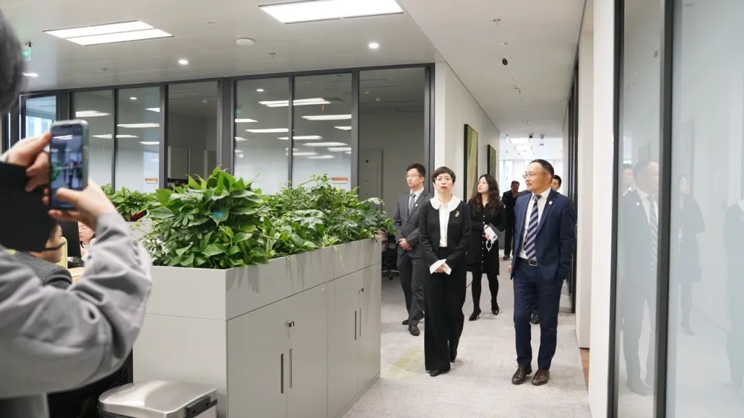 淮海中路街道党工委书记陆晓钧对邦信阳此次乔迁新址表达祝贺,并欢迎邦信阳入驻淮海中路街道,成为淮海社区的一份子。陆书记表示,此次调研是为了解新入驻企业的切实需求,淮海中路街道将在未来给企业提供更好更优质的服务,并推动社区内部企业之间沟通交流。同时强化区域化党建工作,与邦信阳等企业党委加强联动合作。
